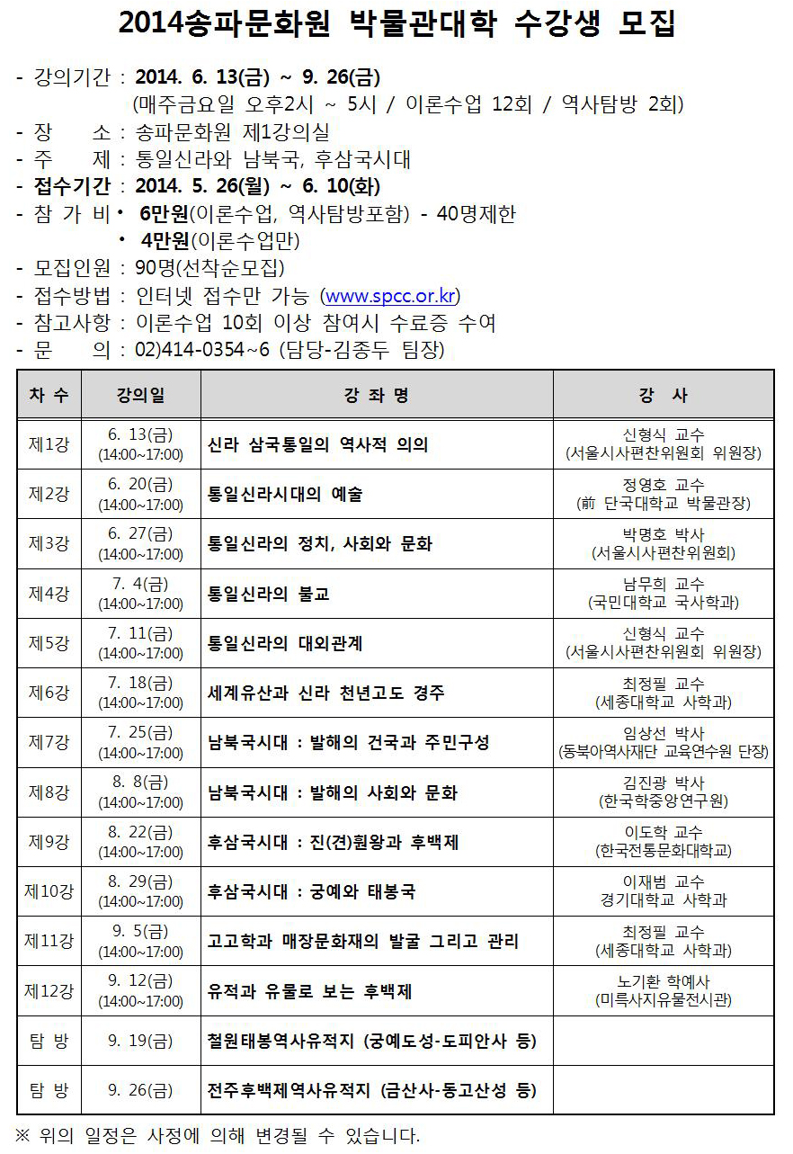 2014³âµµ ¼ÛÆÄ¹®È­¿ø ¹Ú¹°°ü´ëÇÐ ¼ö°­»ý ¸ðÁý ¾È³»!