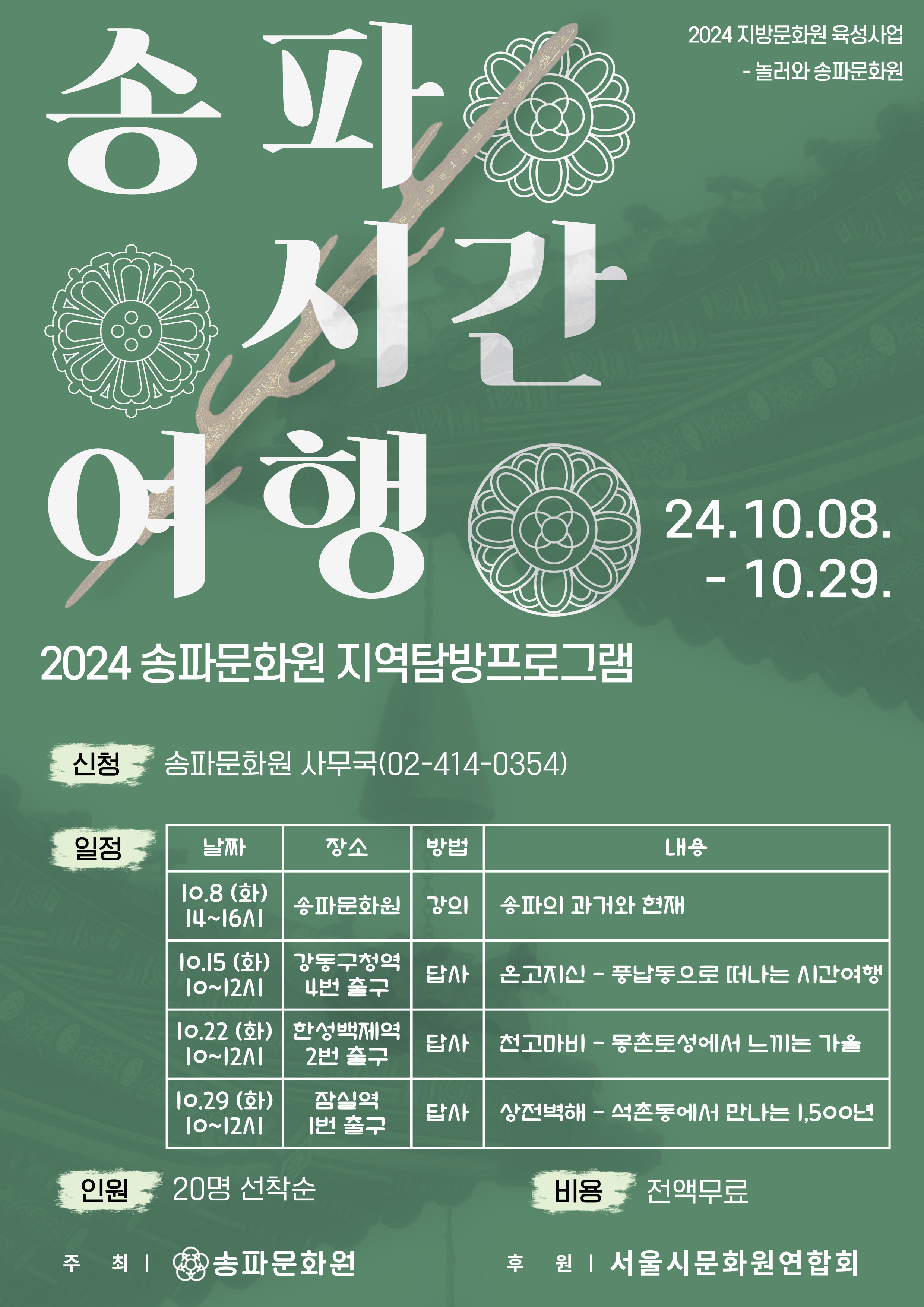 ¼ÛÆÄ¹®È­¿ø¿¡¼­ ¼ÛÆÄÁö¿ªÀÇ ¿ª»ç¹®È­¸¦ ¹è¿ì´Â <¼ÛÆÄ½Ã°£¿©Çà> Áö¿ªÅ½¹æ ÇÁ·Î±×·¥À» ÁøÇàÇÕ´Ï´Ù.